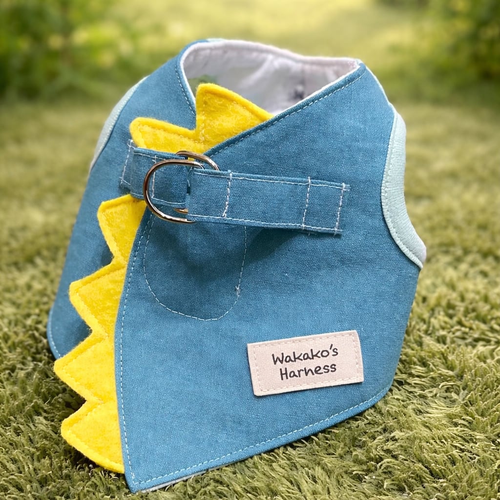 背中の黄色いトゲがちょこんと可愛い恐竜モチーフのハーネスです。