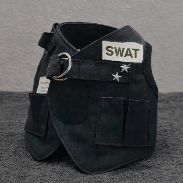 ブラックカラーでまとめた、SWAT風デザインのかっこいいハーネスです。